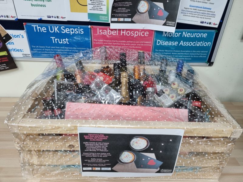In true Chapman Ventilation style, our staff got their aprons on to bake some amazing cakes for their colleagues to purchase and enjoy! As well as the cake sale we had two lovely Valentine’s hampers up for grabs in a raffle. The hampers were the biggest we have ever created and so we sold lots of raffle tickets!
