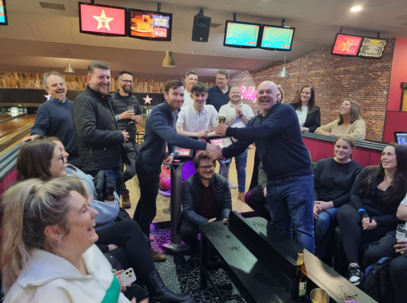 The bowling was taken very seriously by some of our team as there was a trophy up for grabs. However, it was Chris, our Finance Director, who triumphed on the night. He was delighted to regain the title of Bowling Champion that he lost last year to Tony, one of our Project Managers. Tony begrudgingly presented the trophy to Chris and it is now proudly on display in the Finance office.