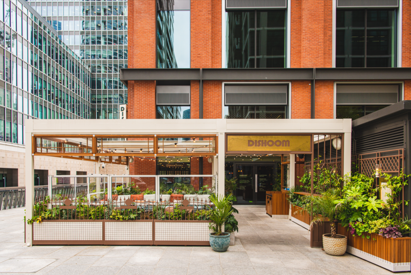 Housed in the new Wood Wharf district of the area, Dishoom is located near other vibrant restaurants including Hawksmoor and Mallow, whilst also positioned in the middle of a residential zone.
