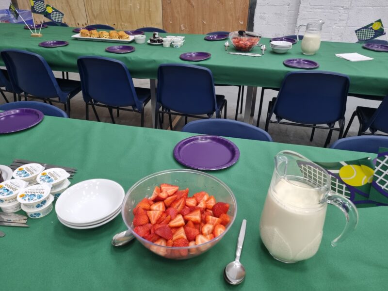The delicious catering was provided by Eat Lunch, our local catering supplier. They provided a fruity punch which was created fresh on site, strawberries and cream plus scones and cake slices.