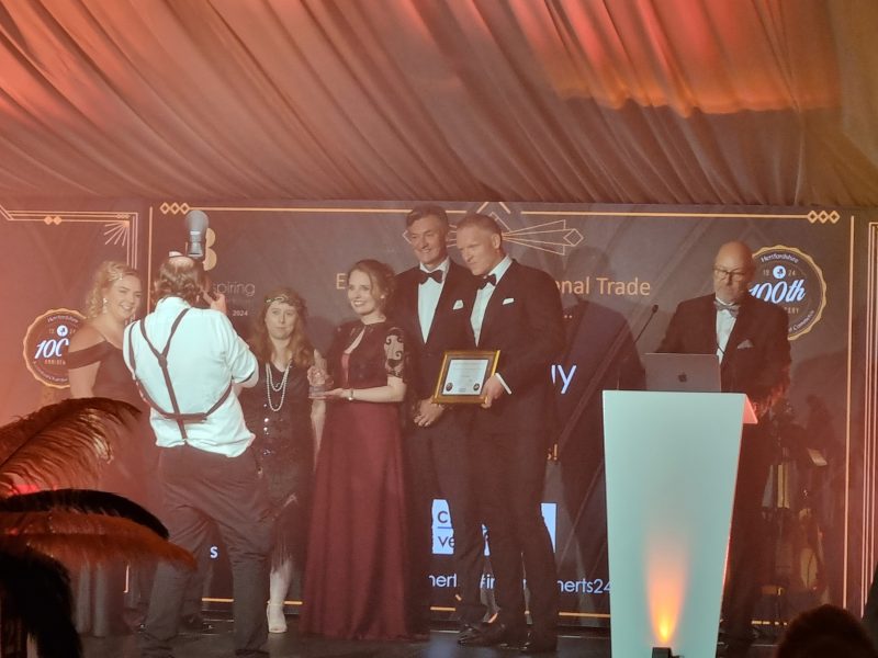 Also known as the Oscars of Hertfordshire, the event was held at Tewinbury Farm in Welwyn and the evening celebrated excellence in Hertfordshire businesses and also showcased the contributions and achievements that make Hertfordshire a fantastic county to be part of. The gala dinner also celebrated the 100th anniversary of the Hertfordshire Chamber of Commerce, and had a 1920’s theme to match.