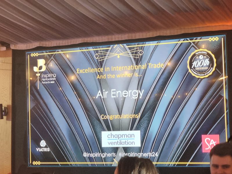Chapman Ventilation also sponsored the Excellence in International Trade category and were pleased to award this to Air Energy.